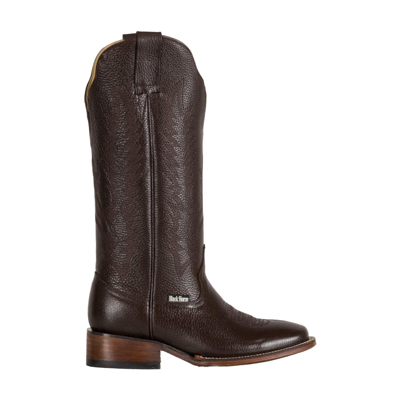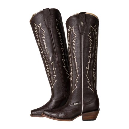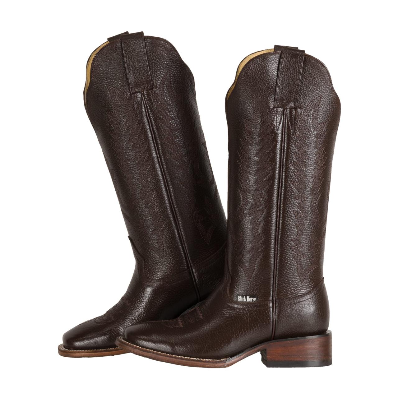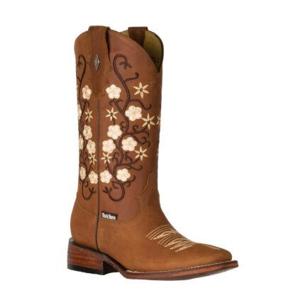 Esta exclusiva bota vaquera para dama destaca por su fabricación 100% artesanal en piel de res con grabado venado chocolate, combinando autenticidad, elegancia y confort en cada detalle.