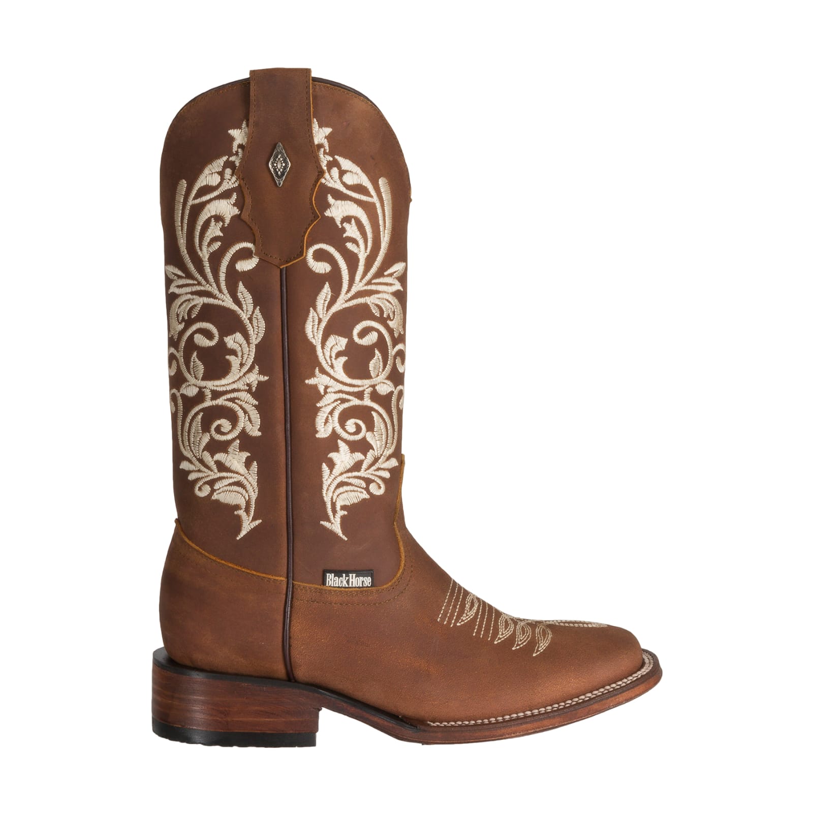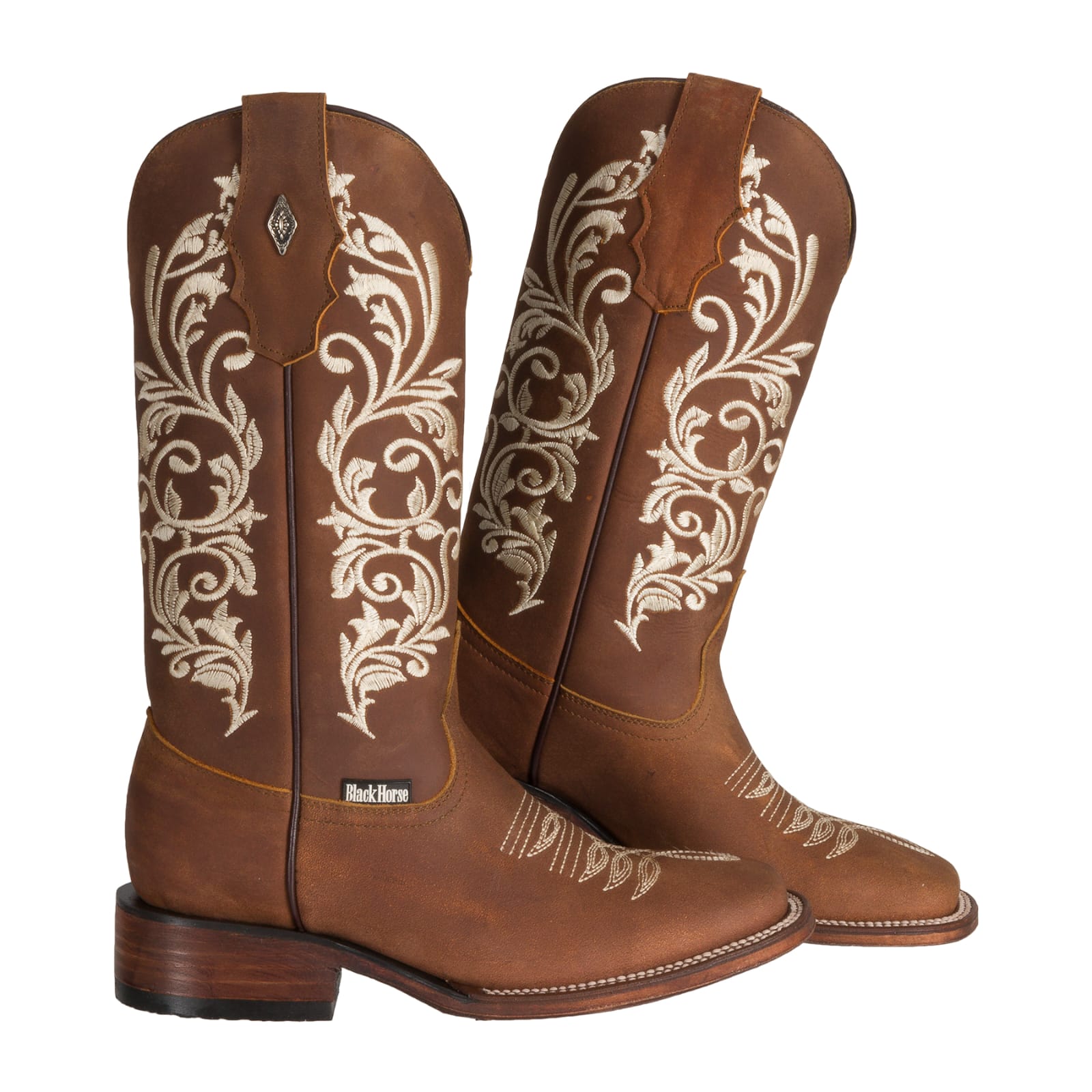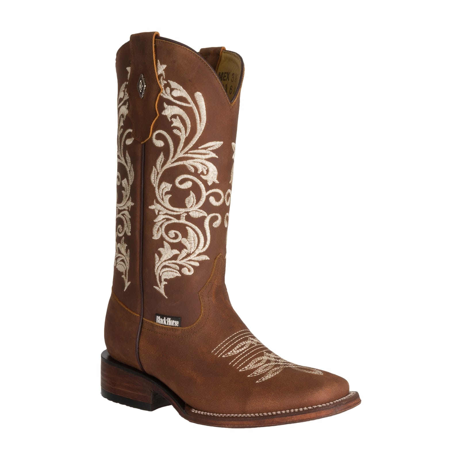 Esta elegante bota vaquera para dama destaca por su diseño artesanal en piel de res con bordado de tallos Pita, ofreciendo elegancia y un estilo clásico en cada par.